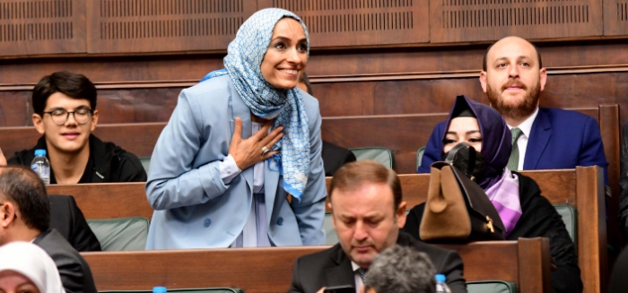Hafta içi Cumhurbaşkanı ve AKP Genel Başkanı Recep Tayyip Erdoğan’ın başkanlığındaki grup toplantısı öncesinde yerini alan Erzurum Milletvekili Zehra Taşkesenlioğlu’na ziyaretçi balkonundan destek gelmişti.