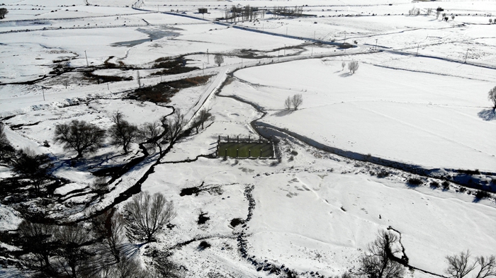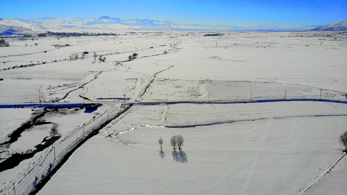 Adeta beyaz bir çarşafı anımsatan uçsuz bucaksız ovalardaki beyaz esaret havadan drone ile görüntülendi.