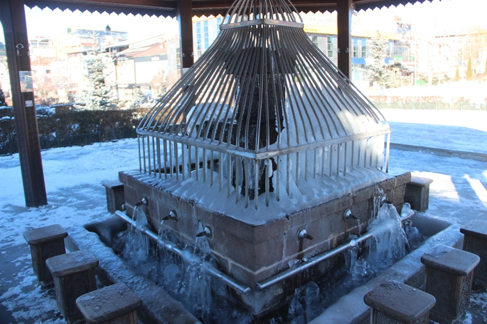 Doğu Anadolu’da etkili olan kar yağışı gece saatlerinden itibaren yerini dondurucu soğuklara bıraktı. Gece saatlerinde sıfırın altında 15 dereceyi gören Erzurum’da nehirler buz keserken cami önlerinde bulunan şadırvanlar ise adeta buzdan şelaleleri anımsattı. Beyaz örtüyle tekrardan beyaza bürünen ovalar ve sisli dağlarda manzarasıyla görenleri büyüledi.