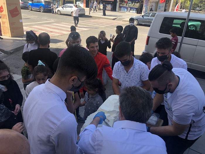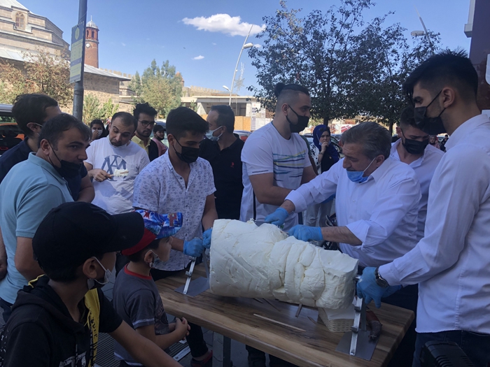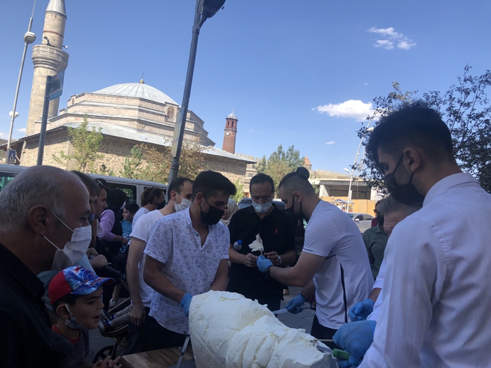 Erzurum Post-Erzurum'da Cumhuriyet Caddesi'nde bir işletme cağ kebabı şeklinde yaptığı dondurmayı vatandaşlara ikram etti.