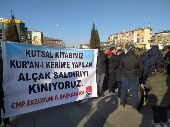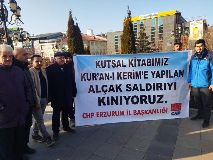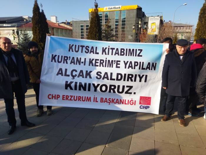 Erzurum Post- Cumhuriyet Halk Partisi (CHP) Erzurum İl Başkanlığı İsveç'in başkenti Stokholm'de Kur'an-ı Kerim yakılmasını protesto etti.