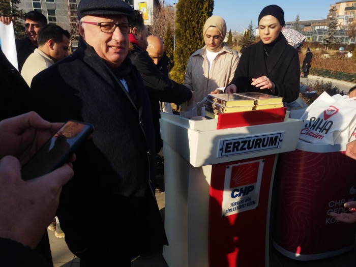 CHP’liler Erzurum’da bugün ikindi namazı sonrası Lala Paşa Camii önünde stand açarak vatandaşların Regaip Kandili’ni kutlayarak Elmalılı Hamdi Yazır'ın meali olan Kur'an-ı Kerim dağıttı.