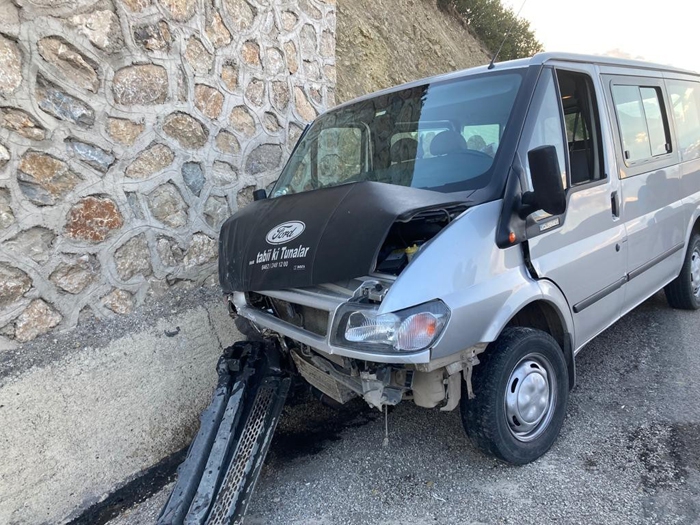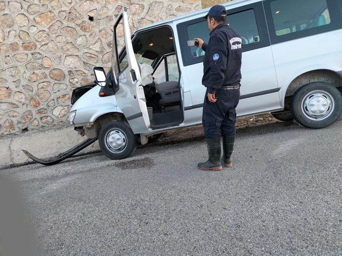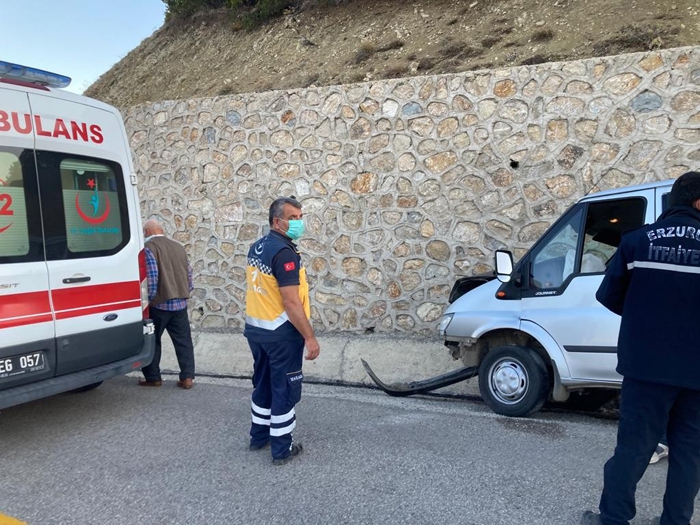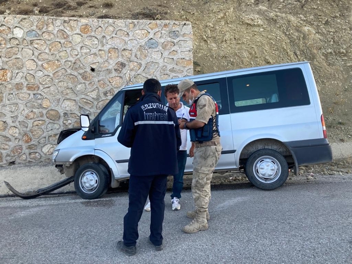 Erzurum Post-Erzurum-Bayburt karayolunda seyir halindeki minibüs, sürücüsünün direksiyon hakimiyetini kaybetmesi sonucu yol kenarındaki duvara çarparak durabildi.