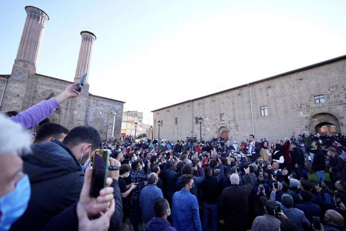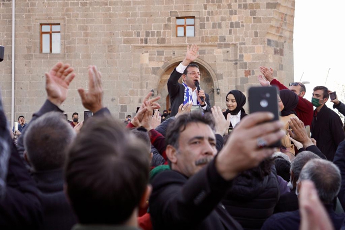 “Aşkale de Erzurum'un girişindeki en özel noktalardan birisi” diyen İmamoğlu, “Bugünkü atmosferde, özellikle siyasi birlikteliği, siyaset üstü bir akılla memleket meselesi görerek yol yürüyen hem başta ittifak partileri Cumhuriyet Halk Partisi ve İYİ Parti olmak üzere, bütün bu sürecin iyileşmesi için, halkla iş birliği yaparak yol yürümek isteyen bir sürecin sonunda, göreceksiniz az önce ülkemiz adına dilediğim gelecek çok yakındır. İnşallah o günleri hep beraber göreceğiz.