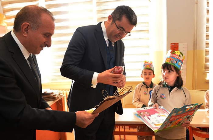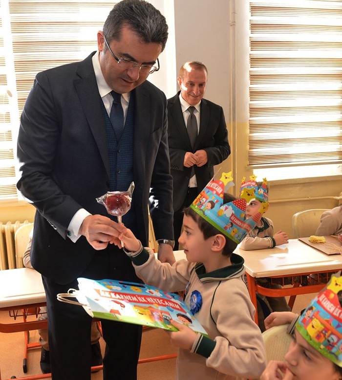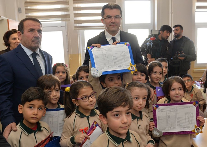 Erzurum Post-Sabancı İlkokulunda düzenlenen törende öğrencilere karnelerinin yanında elma şekeri ve kitap dağıtan Vali Okay Memiş, ilin eğitim sıralamasını en az 10 basamak yukarıya çıkaracaklarını söyledi.