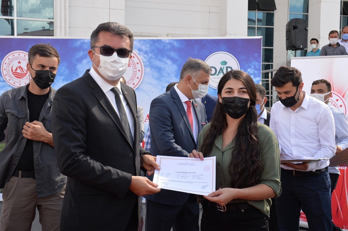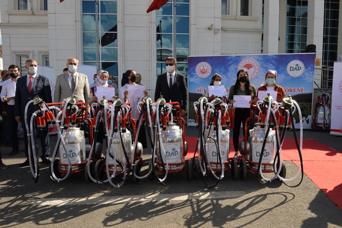 Erzurum Post-Çat Tarım ve Orman Müdürlüğünün organizasyonu, Sanayi ve Teknoloji Bakanlığı Bölge Kalkınma İdaresi Başkanlığı (DAP) desteği ile 89 Çatlı kadın çiftçiye süt sağım makinesi dağıtımı için tören düzenlendi.