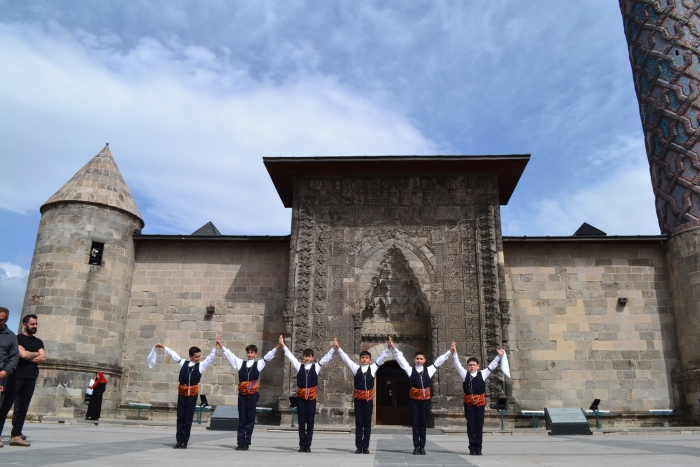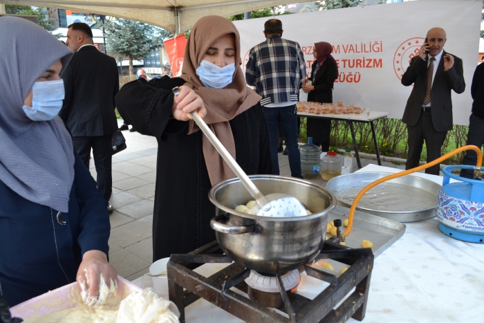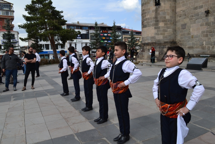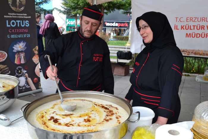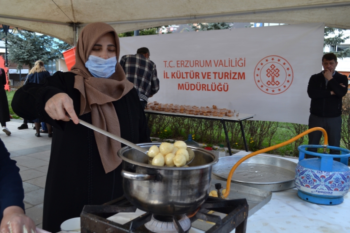 ErzurumPost- Enes Tanas'ın haberi- Yakutiye kent meydanı'nda Erzurum İl Kültür Müdürlüğü tarafından 15-22 Nisan Turizm haftası vesilesiyle etkinlik düzenlendi. Programda Palandöken İnovasyon Kadın Girişimciler Üretim ve İşletme Kooperatifi tarafından vatandaşlara ayran aşı ve demir tatlısı dağıtıldı. Yakutiye medresesinin önünde çocukların Erzurum halk oyunları gösterisi ile başlayan etkinlikle vatandaşları yöresel yemekleri almak için sıraya girdi.