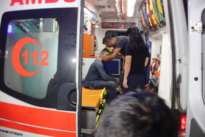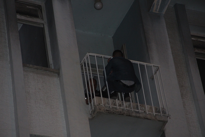 Alkollü olduğu belirlenen ve ailevi sorunları olduğu öğrenilen Gökhan K. (37) binanın üst katına çıktı. Balkon demirlerinden sırtı dönük vaziyette asılan Gökhan K., etrafına bağırmaya başladı.