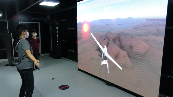 Özel olarak harekete duyarlı ekranımızda ileri teknoloji hareket algılama sistemleri sayesinde yanından geçen veya karşısında duran ziyaretçilerimizin hareketlerini algılayarak milli gururumuz olan Bayraktar SİHA’mızı kullanma deneyimi yaşıyoruz. Yeşil perdemizde ileri teknoloji veri işleme olanakları sayesinde özel bir materyal önünde ziyaretçilerimizin fotoğrafları çekiliyor, çekilen fotoğraflarla da SİHA Bayraktarımız veya 15 Temmuz’la ilgili bir hatıra fotoğrafını vatandaşlarımızın kendi e-posta adreslerine gönderiyoruz.