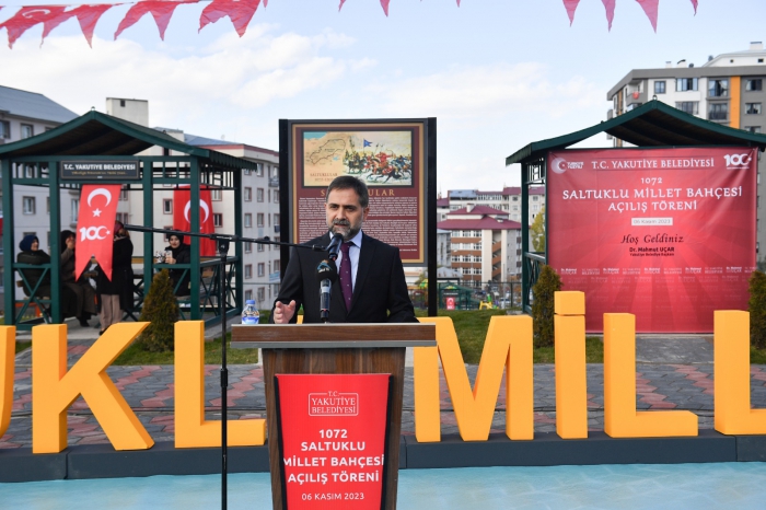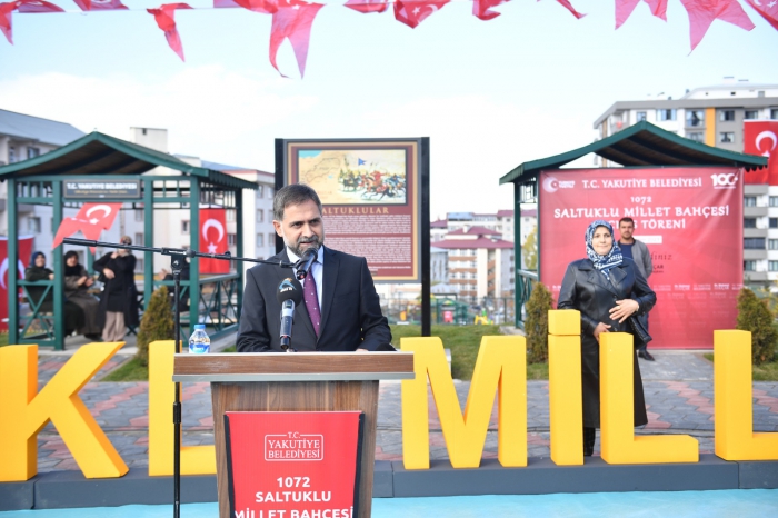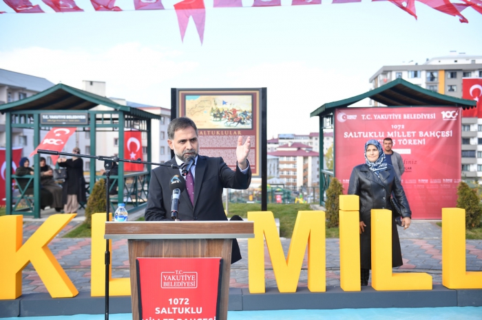 Özellikle bugün açılışını yaptığımız park ve diğer hizmetlerimizde ortak hareket ettiğimiz ve bizlerden maddi manevi desteğini esirgemeyen Büyükşehir Belediye Başkanımız Sayın Mehmet Sekmen ve ekibine huzurunuzda şükranlarımı sunuyorum. Cumhuriyetimizin 100. Yılında Yakutiye Belediyemiz tarafından yapımı tamamlanan bu Millet Bahçesine ecdadımızın aziz hatırasına ithafen ‘’1072 Saltuklu’’ ismini verdik. Cumhuriyetimizin 100. Yılı, Türkiye’mizin yeni Yüzyılının çok daha müreffeh olacağından hiçbir şüphemiz yoktur. Bayrağı en ileriye taşımak için var gücümüzle gece gündüz demeden yılmadan yorulmadan çalışacağız. Bu duygu ve düşüncelerle 1072 Saltuklu Millet Bahçemizin hayırlı olmasını diliyor, bu toprakları bize yurt kılan ecdadımızı saygı ve şükranla yâd ediyoruz.” dedi.