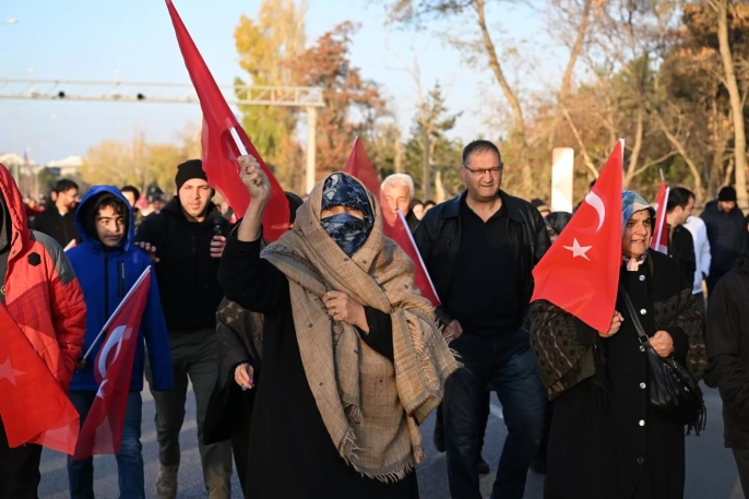 Ayaz Paşa Camii’nde okunan salanın ardından minarelerden yapılan tarihî çağrıyla başlayan yürüyüş, Kars Kapı Şehitliği’nden Aziziye Tabyası’na kadar sürdü. Vatandaşlar, şehitler için dualar ederken o günlerin ruhunu bir kez daha yaşadı.