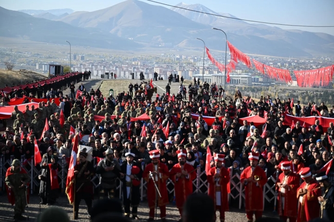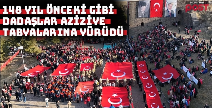 Erzurum Post-148 yıl önceki kahramanlık destanı, bir kez daha Aziziye Tabyaları’nda yaşatıldı. Sabah namazının ardından minarelerden yapılan çağrı ile binlerce Erzurumlu, ecdadının izinde Aziziye Tabyası’na yürüdü.