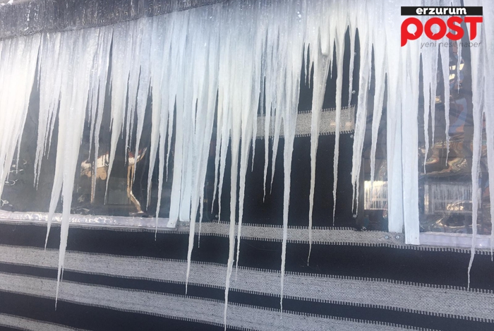Boyu 2 metreyi aşan buz sarkıtları adeta buzdan duvar görüntüsü oluşturdu. Erzurum’da en düşük hava sıcaklığı Karaçoban ilçesinde gece sıfırın altında 26 derece olarak ölçüldü.