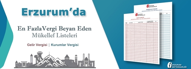 Erzurum Defterdarlığı’nın resmi internet sitesinden ulaşılan listelerde en fazla vergi beyan eden ilk 100 kurum ve isim sıralandı.