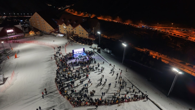 Hava sıcaklığının gece saatlerinde sıfırın altında 6 dereceye kadar düştüğü etkinlikte, snow track operatörleri kar üzerinde drift gösterileri sundu. Yaklaşık 2 bin 900 rakımda ledli kıyafetler giyen ve ellerinde meşaleler bulunan kayakçılar, tek sıra halinde etkinlik alanına inerek izleyenlere görsel şölen yaşattı. Kayakçılar, meşalelerle “Ejder” ve “Palandöken” yazılarını ateşle oluşturdu.